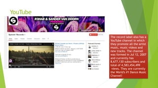Spinnin' Records | Detailed Pedia Spinnin' Records hosts 25 active sub-labels alongside their main imprint; the majority linked to a specific artist. The label provides A&R, management, publishing and (digital) marketing for artists they have under contract. The label used to promote songs without naming the artists in order to 'create a buzz'.